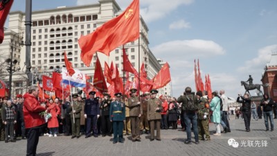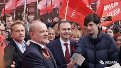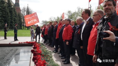 5月8日,为纪念伟大胜利77周年,共产主义者、共青团员和俄罗斯联邦共产党的支持者在莫斯科克里姆林宫城墙附近的无名烈士墓举行了献花仪式。红旗队由俄罗斯联邦共产党中央委员会主席G.A.久加诺夫领导。
