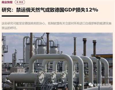 《研究:禁运俄天然气或致德国GDP损失12%》