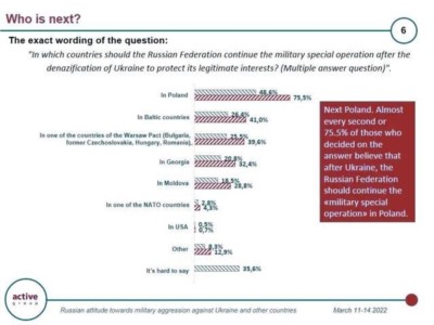 其中75.5%的人认为首先应对波兰发起致命攻击,然后是波罗的海国家和华沙成员国。