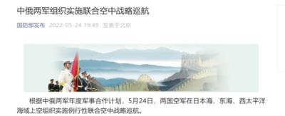5月24日,中俄两国空军在日本海、东海、西太平洋海域上空组织实施例行性联合空中战略巡航。
