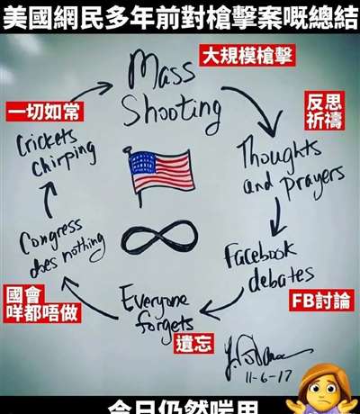 每当造成大规模人员伤亡的枪击案发生后,美国政府就反思、祈祷和装模作样的讨论一下,之后就会遗忘,然后再重复一遍。