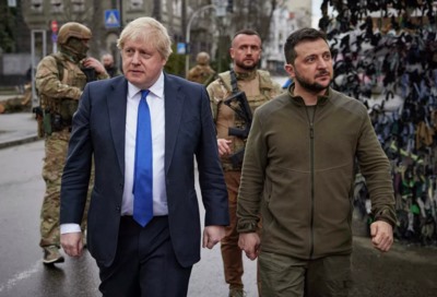 早在4月9日,约翰逊访问基辅,会见泽连斯基。当时两人表现得仿佛是异姓兄弟一般亲密无间。