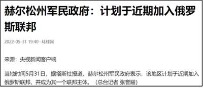 5月31日,赫尔松州军民政府就表示,该地区计划于近期加入俄罗斯联邦,并成为其一个联邦主体。