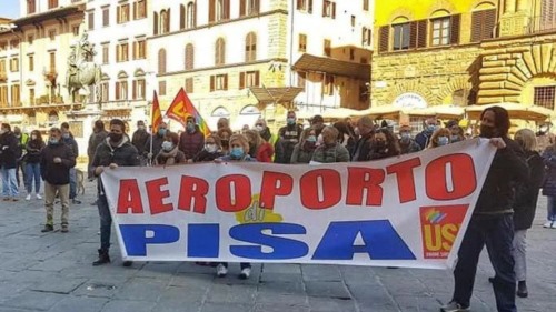 (今年初春,比萨-里窝那地区的工人停止向乌克兰空运武器。这次示威是在比萨进行的。图|“工人世界”网站)