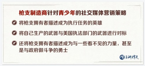 按照美国暴力政策研究中心执行主任乔什·舒格曼的分析,枪支制造商在社交媒体上还有不少针对青少年的营销策略: