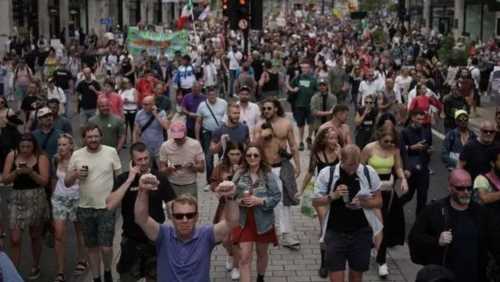 6月18日,英国伦敦爆发大规模游行活动,抗议生活成本飙升。