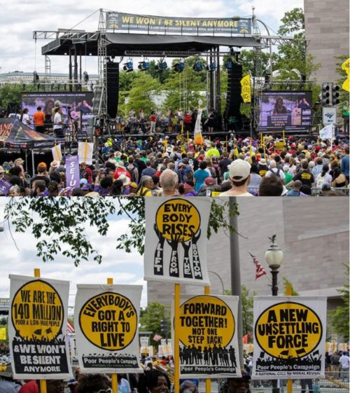 6月18日,来自全美各地的数千民众聚集在华盛顿特区举行了“穷人和低收入工人集会”(Poor People’s and Low-Wage Workers’ Assembly)并进行了示威游行。该集会由“穷人运动”(PPC)组织,主要目的在于解决一直以来广泛影响该国1.4亿穷人和低收入人群的问题——包括要求获得医疗保健和住房,抗议系统性的种族歧视、气候危机和军国主义抬头等。