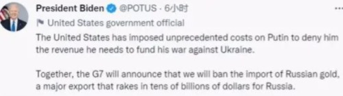 “七国集团将共同宣布,我们将禁止进口俄罗斯黄金。”