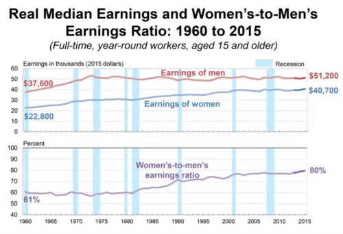 根据美国人口普查局的数据,美国男人每挣1美元,美国女人挣79美分,也就是说美国女性的平均薪水只相当于美国男性的79%。