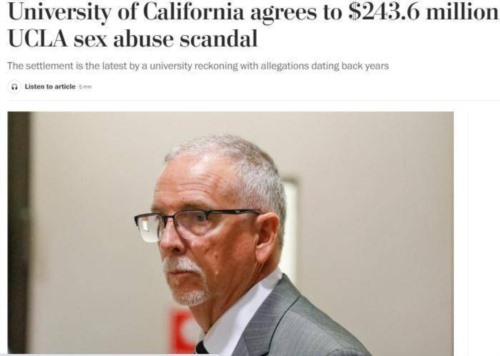 就在最近,美国加州大学表示,校方将向声称遭到“狼医”希普斯(James Heaps)侵犯的200多名女性支付近2.5亿美元。
