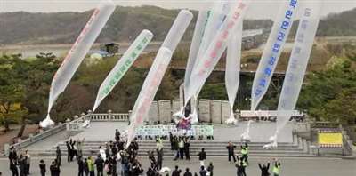 在韩国疫情如此严重的情况下,这样放飞的物品,无论是气球还是宣传单,都有可能沾染上病毒。