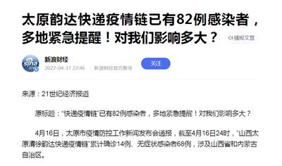 小兵记得很清楚,2022年4月,太原疫情就是因为韵达快递传播起来的。当时,国家邮政局还印发紧急通知,要求山西全省从业人员立即开展全员核酸检测。