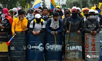 厄瓜多原住民上街示威,封锁道路,要求政府就燃料上涨等问题提出解方。(图片来源:卫报)