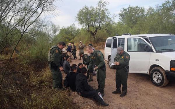 当地时间2016年8月16日,美国德克萨斯州罗马,美国边境巡逻人员在美国与墨西哥边境抓获一批非法移民。