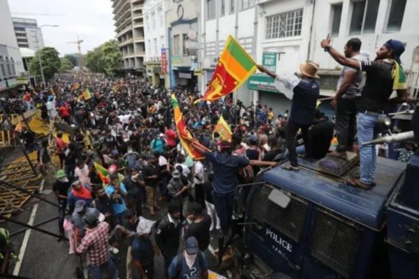 群情激昂的示威民众当天上午开始集会游行。下午一点左右,大批高举斯里兰卡国旗甚至佩戴头盔的示威者闯进总统官邸。他们站在屋顶,在总统府内四处走动,躺在床上、在游泳池中游泳,类似画面传遍社交网络。据说直到今天仍有人在总统官邸闲晃,忙着自拍。
