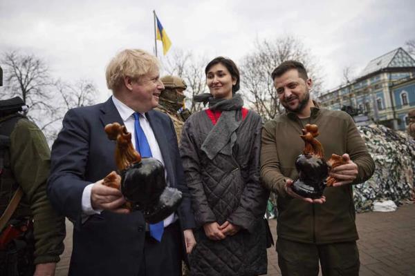 2022年初开始的俄乌战争让约翰逊得以转移民众对于其执政危机的关注,暂时保住首相之位。约翰逊的机会主义再次发挥的淋漓尽致。他相较于欧洲其他国家领导人展现出对于俄罗斯更强硬的态度以及对乌克兰更坚定的支持,这为其赢得了难得的海外声誉。约翰逊是俄罗斯入侵乌克兰之后最早前往乌克兰首都基辅访问的西方领导人之一,并在今年6月20日第二次访问基辅,并受到了当地群众极大的欢迎。约翰逊与泽连斯基关系密切,时常在社交媒体上互相发文称赞和支持对方,最近几周,泽连斯基还明确表示,希望约翰逊继续任职。就在约翰逊辞职前几天,他敦促北约国家履行国防在国内生产总值的占比2% 的承诺,并且表示脱欧后的英国可以利用相对的军事力量来获得外交政策优势。英国给乌克兰提供的军事援助数量仅次于美国,约翰逊已经向乌克兰承诺提供28亿美元的军事援助和18亿美元的人道和经济援助。乌克兰总统泽连斯基在约翰逊辞职后发表声明,感谢约翰逊在俄罗斯入侵乌克兰的艰难时刻给予乌克兰的支持,泽连斯基表示约翰逊是支持乌克兰“最坚决的西方政治家之一”,称其为“英雄”,并表示其本人和整个乌克兰“都对你寄予同情”。而约翰逊也在周四简短的辞职讲话中,专门提到了乌克兰,并表示英国会继续支持乌克兰人民为自由而战。约翰逊对乌克兰危机的反应也为英国留下了国防开支相对较高的承诺。