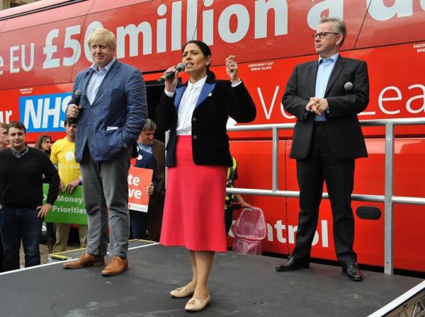 约翰逊的投机主义在英国脱欧问题上体现的尤为明显。在英国决定举行脱欧公投的2016年初期,约翰逊在脱欧问题上立场并不明确,曾发表互相矛盾的言论,既支持脱欧,又反对脱欧。其后在脱欧的关键时刻,他反叛时任首相卡梅伦,支持脱欧,在卡梅伦辞职后,参选保守党领袖,但最后退出竞选。其作为脱欧派领导人物之一,时常出现在印着3.5亿英镑的红色巴士旁边,这是其推动脱欧的一个重要谎言,即谎称英国正在向欧盟输送这笔钱,并承诺脱欧后,这笔钱可以用来为NHS提供资金。特蕾莎·梅当选首相后,任命他为外交大臣,期待他继续作为脱欧派领头人物作出贡献。