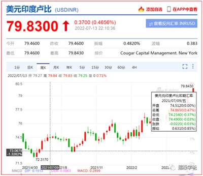 印度目前的形势可以说是“泥菩萨过河——自身难保”。去年7月1美元能兑换73印度卢比,而现在1美元能兑换80卢比。