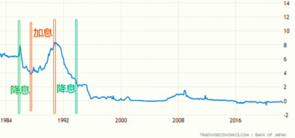 1985年美、日、英、法、德五国在纽约签订“广场协议”。美国为了解决本国贸易逆差的现象,强迫日元兑美元大幅升值,在随后的两三年间,日元兑美元升值近一倍。虽然该办法没有从根本上扭转美国的逆差现象,但是美国对德日等国的出口量随即扩张,而日本出口量腰斩。日本经济遭到了美国的迎头痛击,在1986年短暂发生“日元升值萧条”。在美帝国主义的打压下,日本资产阶级政府不甘心世界市场份额就此被侵吞,于是使用信用泛滥的方法,如调低利率、坚持扩张性财政政策,以期提振出口、维持国内经济景气。由于日元大幅升值,国际资本也纷纷涌入日本市场保值增值,日本股市和房市逐年走高。最终,日本流动性过剩,信用泛滥,房市和股市投机严重,泡沫大有崩溃之势。