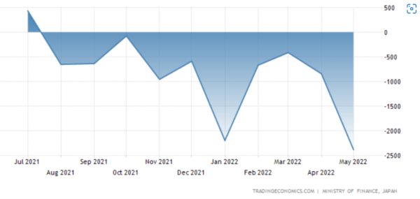 在这样的背景下,日本贸易逆差迅速扩大,国际收支处于不平衡状态,美元外汇储备不断减少。为了抵消进口成本上升的压力,日本政府不得不再次开启大放水模式,通过低利率政策和扩张性财政政策,对困难的资本家给予补贴,以提振经济。