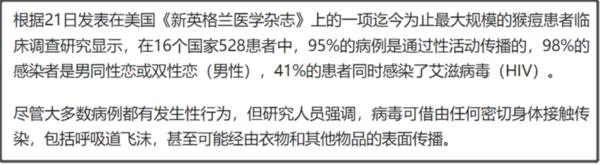 从目前猴痘的实际感染情况看,我也认为,虽然当前确诊的猴痘病例,大都是在男同性恋群体传播,但并不意味着猴痘只在男同性恋群体传播。