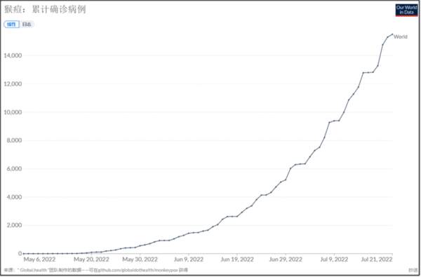 看下图这个猴痘累计确诊病例数,就知道了,一个很标准的指数级增长的曲线。