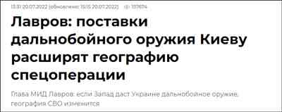 俄罗斯外交部长拉夫罗夫7月20日在接受《俄罗斯新闻社》采访时表示,“现在的地理环境不同了,这不仅仅是卢甘斯克和顿涅兹克,还有赫尔松地区、扎波罗热地区(均位于乌克兰南部)和其他一些地区。这一进程还在继续,并将持续不断地继续下去”。