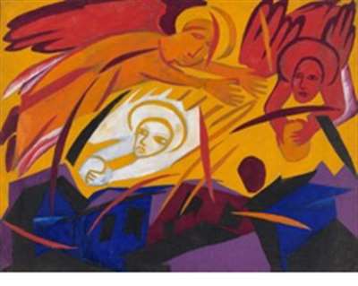 《天使向城市投掷石头》纳塔利娅·冈察洛娃(俄罗斯)作于1911年