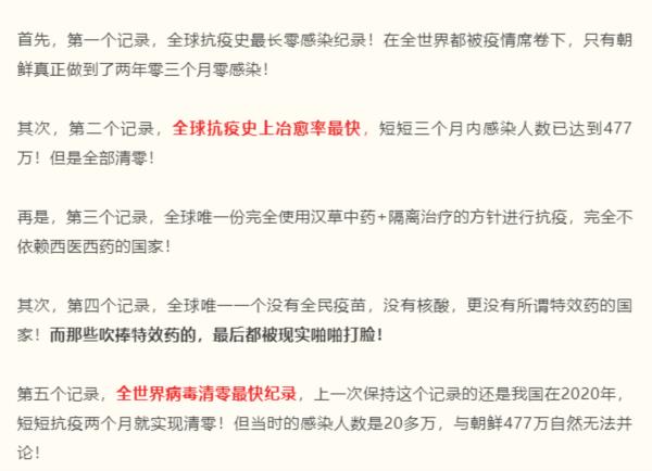 朝鲜不仅做到长达两年零三个月零感染,还做到效率最快、治愈率最高。这些有数据支持,无需赘言。