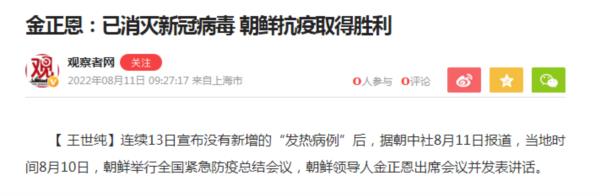 其实,早在8月8日,凤凰网就报道说,朝鲜将召开全国紧急防疫总结会议,或宣布结束疫情:
