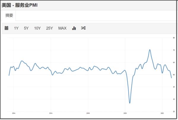 美国7月服务业PMI骤降到47.3,已经大幅低于50的荣枯线。