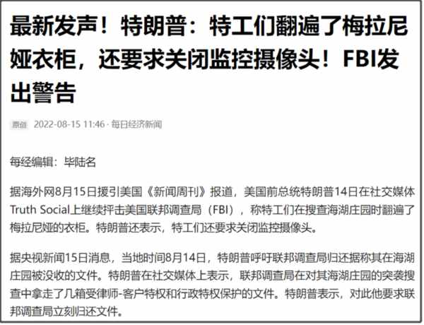 而且特朗普最新发声时指责FBI还翻遍了他老婆的衣柜,特朗普还表示,FBI特工当时搜查的时候,还特意要求关闭海湖庄园的监控摄像头。