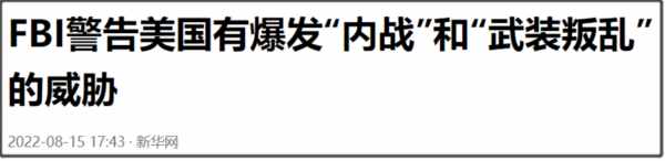 包括FBI甚至也在警告美国有爆发“内战”和“武装叛乱”的威胁。