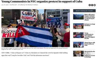 △7月15日,纽约青年共产主义者组织抗议活动支持古巴