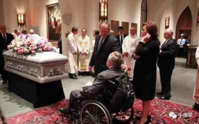 2018年4月,和老布什相伴了一生的芭芭拉去世。在妻子的葬礼上,坐在轮椅上老布什不舍离去,静静地凝望灵柩长达15分钟。半年后,他最终随芭芭拉而去,享年94岁。