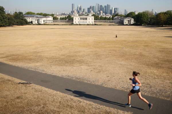 2022年8月14日,高温干旱天气下英国伦敦格林威治公园干枯的草坪。图|IC photo