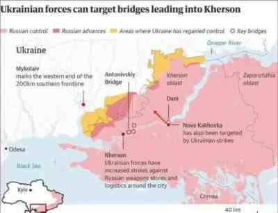 为了缓解俄军在北部的压力,乌克兰开始酝酿发起赫尔松战役,试图击败俄军跨过第聂伯河部署的两万人重装军团,迫使俄军后撤,重新控制赫尔松州。