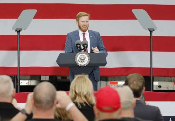 当地时间2020年10月14日,密歇根州,彼得·迈尔(Peter Meijer)在活动上发表讲话。