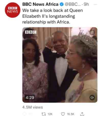 当英国广播公司(BBC)试图还在沿用伊丽莎白二世女王的政治遗产,试图维系和原殖民地国家关系,在描述女王与非洲朋友们之间“长久的、牢固的友谊”之时,评论区翻车,遭到非洲网民和全世界其它国家网民的抨击。