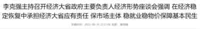 李克强说,6个经济大省经济总量占全国的45%,是国家经济发展的“顶梁柱”。经济大省要勇挑大梁,发挥稳经济关键支撑作用。6省里4个沿海省在地方对中央财政净上缴中贡献超过6成,要完成财政上缴任务。