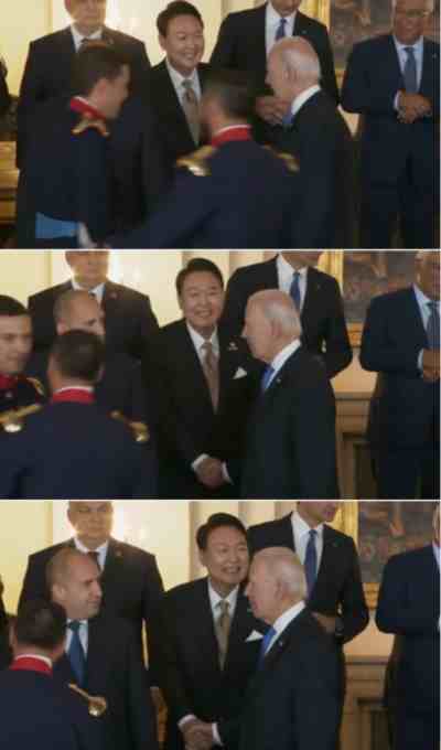 据韩媒透露,尹锡悦与拜登这“48秒会谈”,发生在全球基金第7届财政公约会议后的集体拍照环节。这是临时插入的一个环节,拜登因国内的其他政治行程缩短了在纽约的停留时间,所以原本计划的“正式韩美首脑会谈”被取消了。