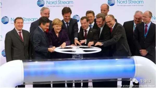 刚才查资料的时候,看到当年的一张照片,应该是2011年“北溪-1”启动仪式上,默克尔和梅德韦杰夫笑得像朵花一样,在众多官员簇拥下,将双手搭在管道的控制轮盘上。