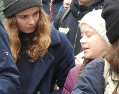 如你所见,右边的是传说中的瑞典少女格雷塔,左边的哪位,就是“诺伊鲍尔”,那么她是干什么的,呼之欲出了。