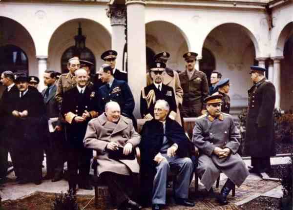 因为罗斯福还和斯大林一起,要求法国战后放弃东南亚印度支那,反对英国进攻巴尔干半岛,甚至趁着丘吉尔不在场,一起商量如何终结殖民时代。