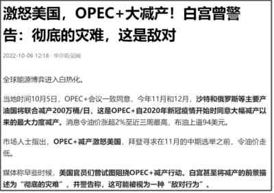 只不过,欧佩克+这样做也确实很不给拜登面子。