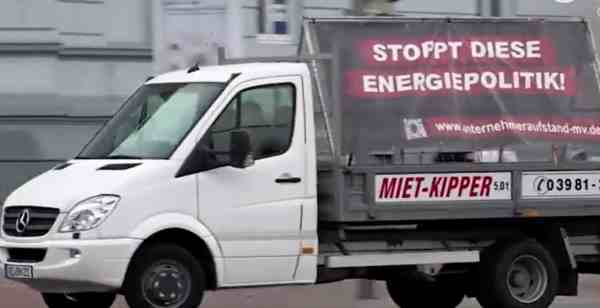 德国新勃兰登堡的民众甚至发起汽车游行,数百辆汽车贴着抗议标语或是载着大型的宣传架,抗议德国的能源政策和对俄制裁。
