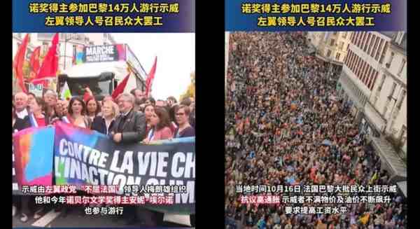 当地时间10月16日,巴黎爆发大规模游行示威,以抗议严重通胀、抗议高昂生活成本,抗议薪资过低、食品和能源价格上涨。