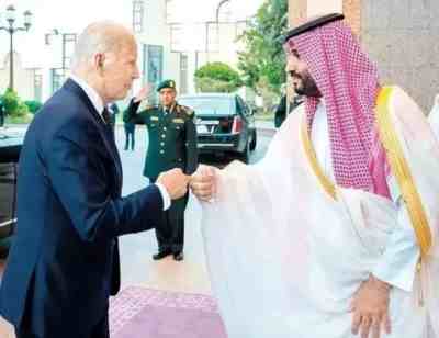 7月份的时候,拜登亲自到访沙特,劝沙特带头增产降价。为了达到目标,拜登还特意和小萨拉曼碰拳头,表示不再纠缠之前的恩怨。