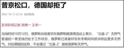 10月12日,普京也曾经表示,北溪2号天然气管道的一条支线仍处于工作状态,俄罗斯已准备好在秋冬期间向欧洲供应更多天然气。
