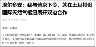 而在10月12日,普京也曾经表示,俄罗斯可以通过土耳其向欧洲供气,并在土耳其建设欧洲最大天然气枢纽。